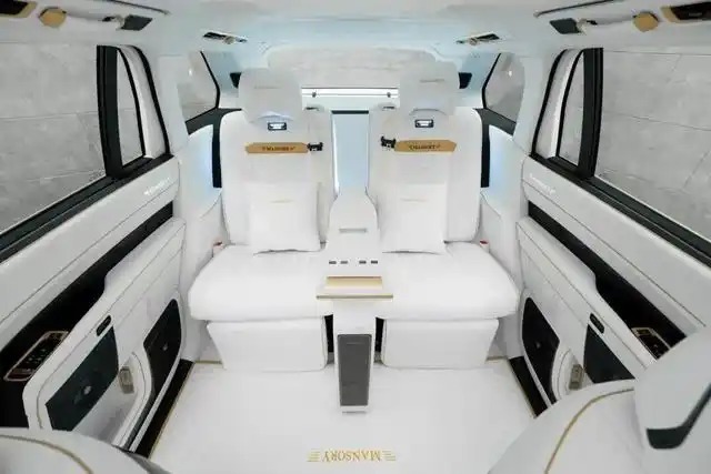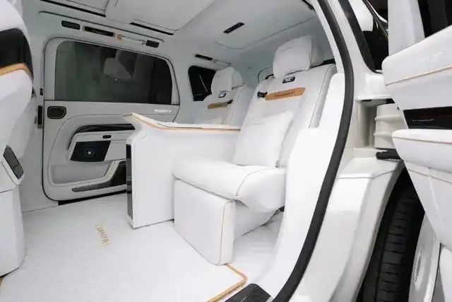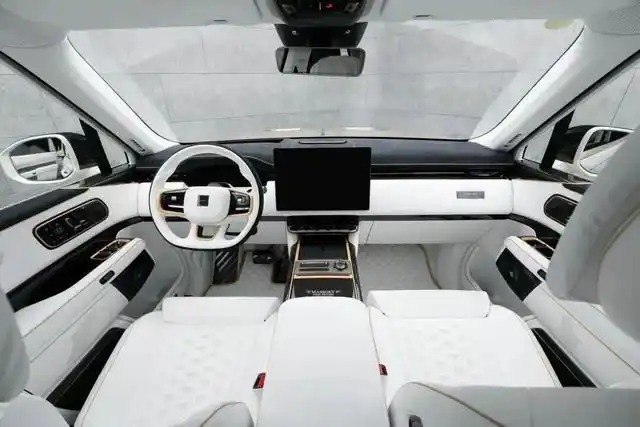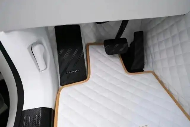 车内则被象牙白真皮全面包裹,金色缝线贯穿方向盘、座椅、门板。后排独立航空座椅配备腿托与加热/通风功能,中央控制台集成定制音响系统,搭载4座尊享布局,仪式感和舒适感双双重锤。