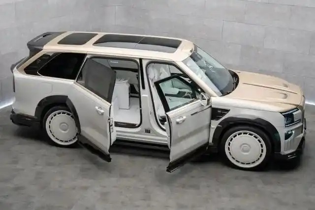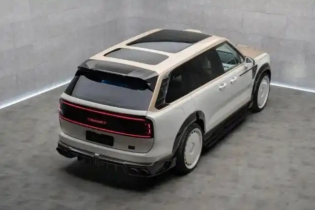 迈莎锐极氪9X定制版,起售价高达40万美元(约275万人民币),整车基于极氪9X深度打造。全车采用"晨曦白拼暮光金"的双色涂装,致敬东方典雅,车头直接上了迈莎锐劳斯莱斯同款前脸设计。车尾贯穿式LED尾灯嵌入可发光" MANSORY"标识,碳纤维尾翼与四出排气,端庄里暗藏不羁。